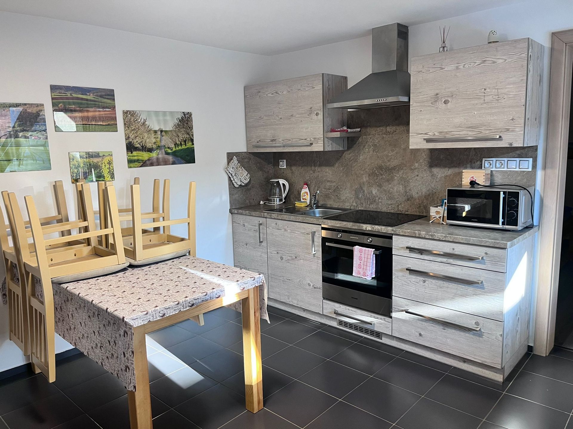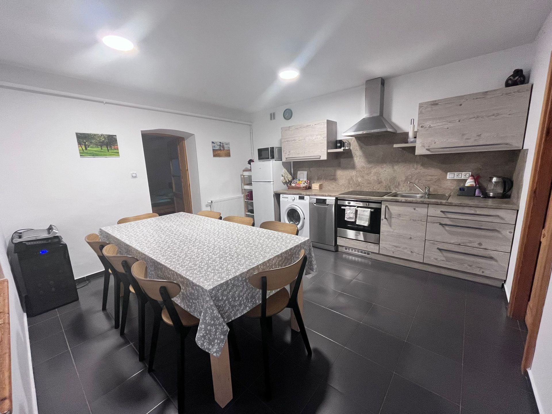 Dům tvoří dva propojené apartmány. Pronajímají se společně jako jeden celek.